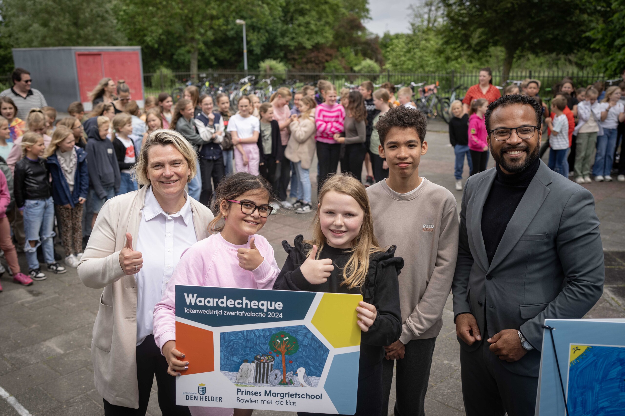 De wethouders Petra Bais en Fotigui Camara en kinderraadslid David Zijderlaan hebben donderdag 23 mei 2024 de eerste van vier nieuwe posters onthuld over het bestrijden van zwerfafval. De tekeningen op de posters zijn gemaakt door leerlingen van basisscholen in Julianadorp en Den Helder. Stadsdichter Yanaika Zomer schreef er prachtige gedichten bij, die samen met de tekeningen op reclameborden te zien zijn. De posters hangen van 3 tot en met 16 juni door de hele gemeente.