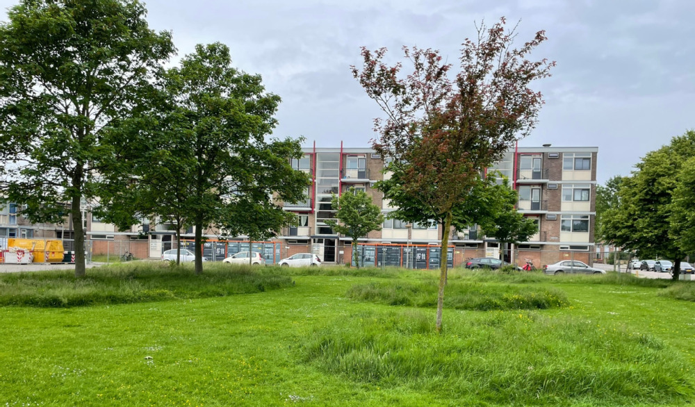 De proef is afgelopen jaar begonnen op het grasveld aan de Korvetstraat en de Schoenerstraat in Nieuw Den Helder. Daar maaien we onder de bomen niet meer, omdat dat beter is voor de ondergrond. Op plaatsen waar wel regelmatig gemaaid wordt, klinkt de bodem steeds wat verder in. Daardoor kunnen wortels van bomen en planten lastiger groeien. Door niet meer te maaien blijft de ondergrond ‘losser’ en hebben de boomwortels meer ruimte om te groeien. Ook van belang is dat afgevallen bladeren nu rond de boom blijven liggen en zo de bodem van voeding voorzien.
