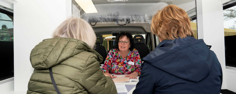 Op sommige momenten kunnen medewerkers onderling ook samenwerken. Ingrid geeft een voorbeeld. Neem vorige week, toen een meneer nog even bij ons in de bus kwam voor de berekening van zijn huur- en zorgtoeslag. Zijn inkomen was namelijk gewijzigd. Hoewel we op afspraak werken, kon ik meneer direct helpen. Het was op dat moment even rustig in het steunpunt.