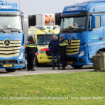 De harde wind zorgde ervoor wat de achterkant van de vrachtwagen omwaaide. De chauffeur kwam onder de vrachtwagen terecht. Hij is gewond naar het ziekenhuis gebracht.